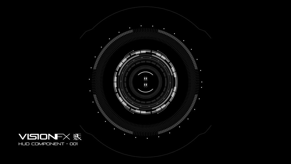 The pre-animated version of HUD Component 20-001 is a ProRes 422 3k file that runs for a :30 duration. Rendered black and white for use as either a screen or additive blend layer, and can be easily colorized.