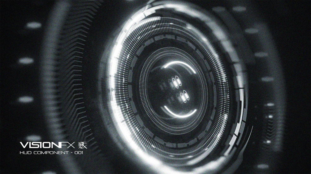 The pre-animated version of HUD Component 20-001 is a ProRes 422 3k file that runs for a :30 duration. Rendered black and white for use as either a screen or additive blend layer, and can be easily colorized.