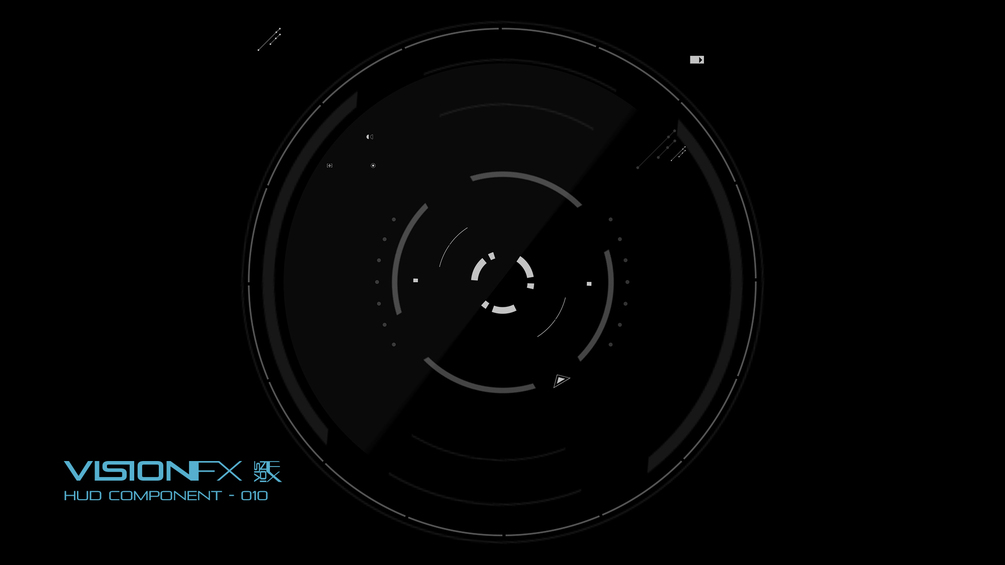 The pre-animated version of HUD Component 20-010 is a ProRes 422 3k file that runs for a :30 duration. Rendered black and white for use as either a screen or additive blend layer, and can be easily colorized.